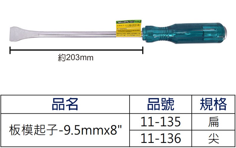 > 11-135 板模起子-9.5mmx8"(扁)