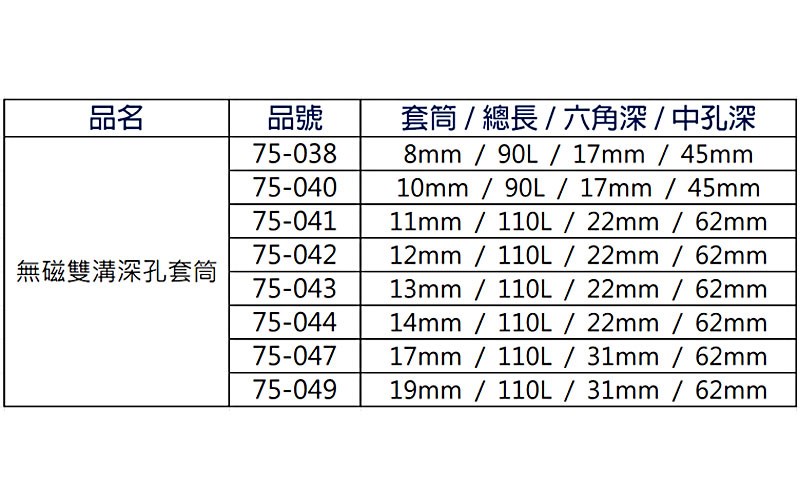 產品品號:75-047 材質採用CR-V特殊合金鋼。 六角軸雙溝設計。