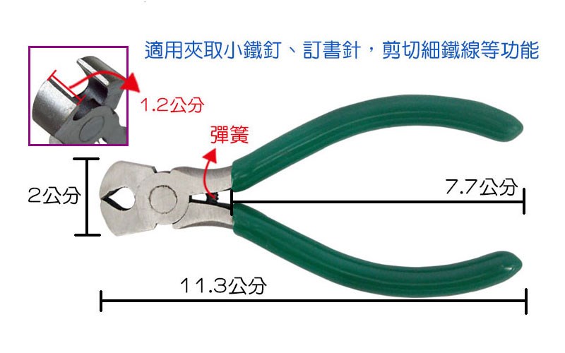 產品品號:88-503 電信、電器、美勞、飾品、模型等使用。 刃口高週波熱處理。 舒適防滑膠柄。 省力彈簧。