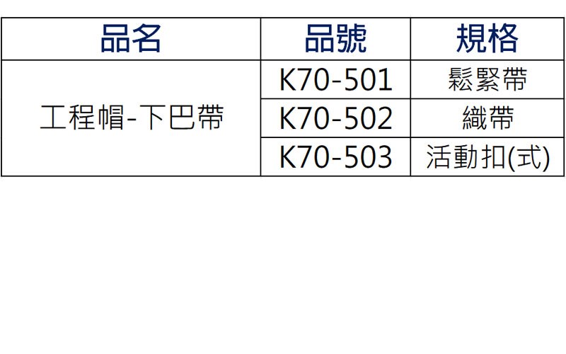 > K70-501 工程帽扣下巴帶-鬆緊帶