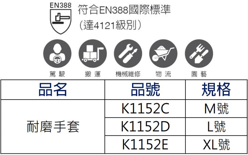主要用途: ●機械維修、水電工程、物流搬運等作業時防護使用。 產品特色: ●透氣、舒適、高抓握力。 產品材質:尼龍、丁腈。