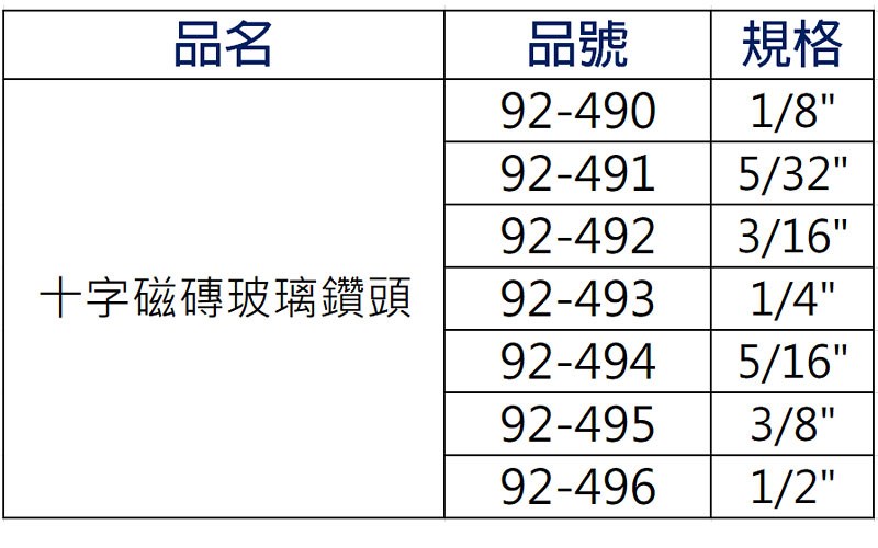 > 92-492 十字磁磚玻璃鑽頭-3/16"