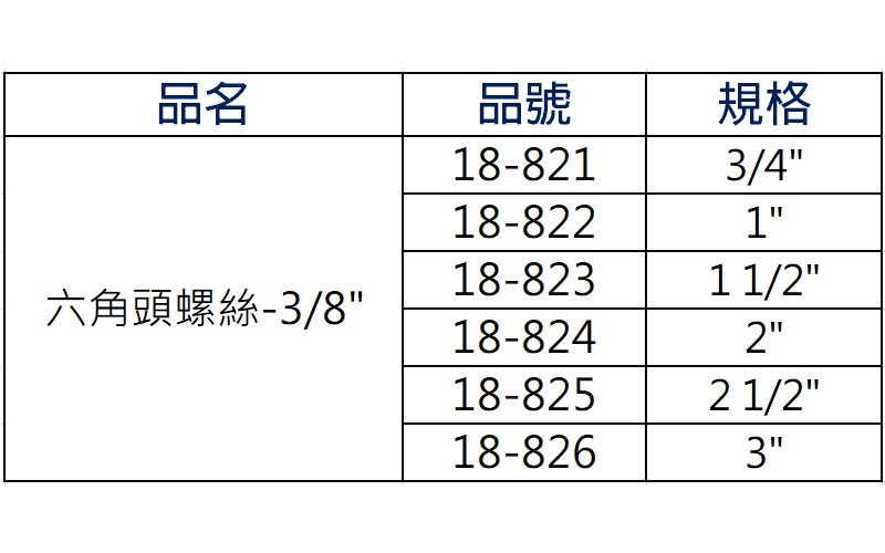 > 18-824 六角頭螺絲-3/8" x 2"