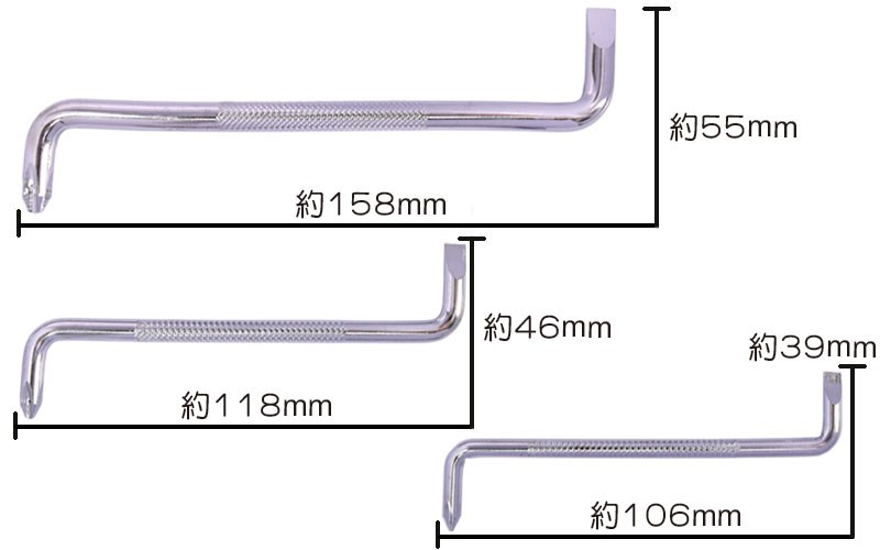 主要用途: ●機械、汽車、DIY等使用範圍廣。 產品特色: ●多功能彎角造型,提升工作效率。 產品材質:碳鋼、鍍鉻,熱處理加強硬度。