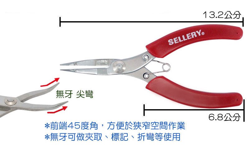 產品品號:88-541 電子零件精細作業操作。 不鏽鋼材質。 方便於深和窄的工作空間操作。 具彈簧,鉗口自動開口。