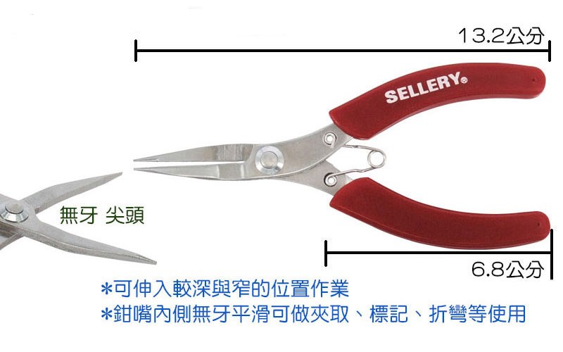 產品品號:88-539 電子零件精細作業操作。 不鏽鋼材質。 方便於深和窄的工作空間操作。 具彈簧,鉗口自動開口。