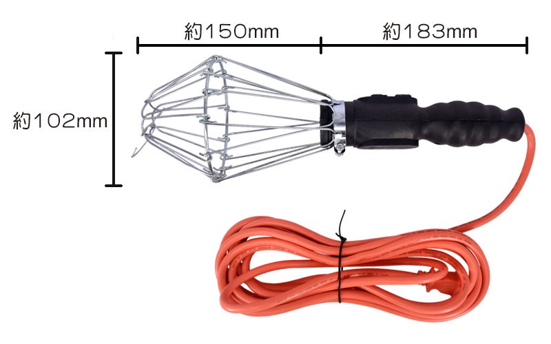產品規格: ●0.5mm2 ( 平方公釐 ) / 15尺 ( 450公分 ) ●使用電壓 AC110V 60Hz ●使用光源 250W以下 主要用途: ●工作燈。 產品特色: ●附電源線插座、陶瓷燈頭。 產品材質:鐵網、陶瓷座芯、尼龍。 ( 燈泡請另購 )
